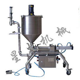 該攪拌式灌裝機特別適合顆粒醬料產品生產廠家設備選擇,立式結構,節省場地...
